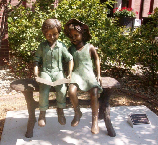 We attended a reception at the Library this afternoon where a Daughter of Jacques and Ann Berger was recognized for having donated this "Friends" sculpture to the Library. It is located near the west door and fits in to the landscaping beautifully. We are all very proud of our Seward Memorial Library and this is one more feature that helps make it a community centerpiece. The Bergers were an old Seward Family and for years associated with an "Auto Shop" Business. Back in the days when automobiles had generators, they had the equipment and ability to "rewind them" which brought customers to town from miles around. The modern "Alternators" have changed all of that and their business has gone the way of many in our small towns. We knew the Bergers through the Church as well as through their business. Jacques was in Kiwanis and an early user of Ameritrade for stock market trades during his retirement years. In fact he was instrumental in getting me started with Ameritrade back in the early '90's. They were good people and this is a great memorial. Thanks
