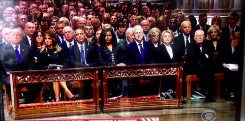 The funeral of President George H. W. Bush has been outstanding and will continue to be down at College Station, TX. There have been many notable comments made during the past couple days. I believe that the Eulogy given by Jon Meacham, the President's biographer, was tops. I listened to it again this evening and felt that every word was perfect. Meacham obviously knew the details of Bush's life and had the professional ability to choose just the right words for his message. I understand that Meacham read it to H.W. some time ago and it's no wonder that #41 responded by saying, "That's a lot about me". The selection of each subject and every word was chosen for a purpose. It is admirable for someone to provide an example that is so different than what President Trump does in his tweets. I can only hope that our current President learned some things today from Meacham and others. The TV coverage was excellent today and will become a historic memory for millions of people around the world. The front row of past Presidents and Trumps was impressive.